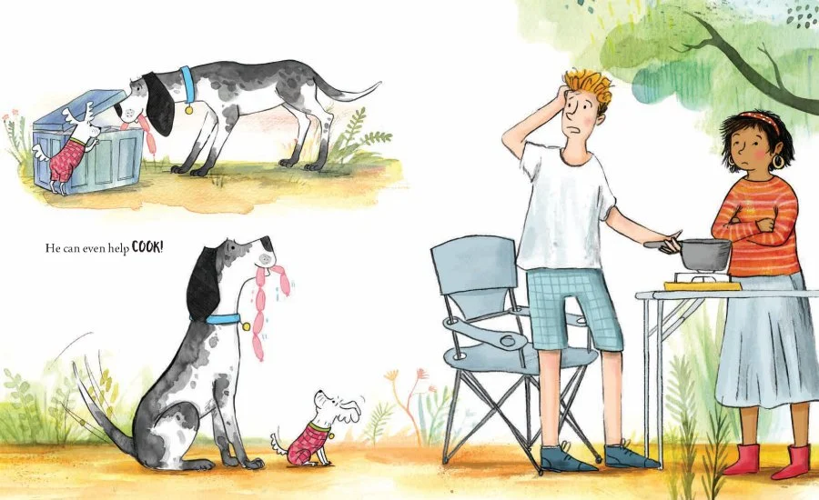 Big Dog can't wait to go camping with Little Dog for the first time and show him how it's done. Big Dog is very good at helping! But things don't go as planned in this warm, funny picture book about newly blended families and learning to get along.