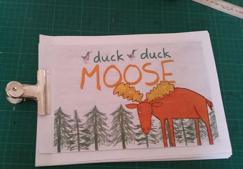 Two ducks were bobbing around in the water and I started to think of the game ‘duck duck goose’. But for some reason I thought of ‘duck duck moose’. I imagined a moose, leaping into the water to join the ducks, when they were expecting a goose instead. And of course the ducks would be terribly disapproving.