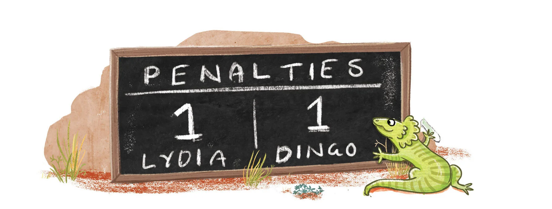 I had a great time illustrating this fun, warm and empowering story by talented footballer Lydia Williams, goalkeeper for the Matildas. And so did my son Joe! The story is set in Australia’s outback, and so I was able to nab some of the beautiful watercolours he had done for school and incorporate them into my illustrations.