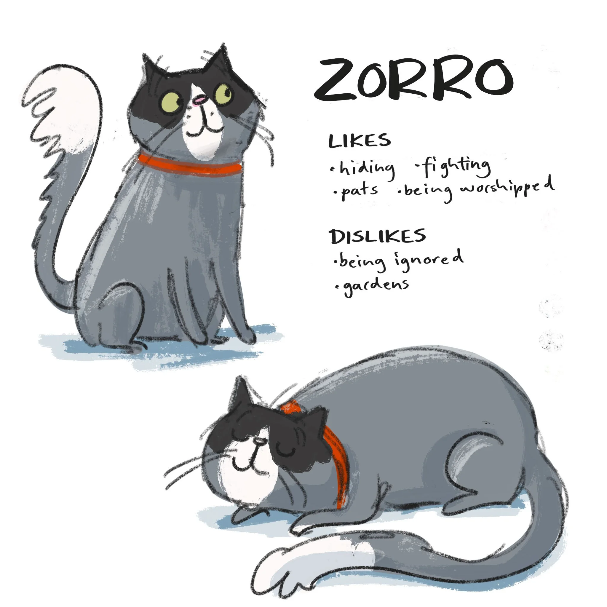 I loved illustrating this book. To help me keep all the cat’s markings consistent, I created a poster featuring every cat in the book, along with character ‘facts’ for each of the 31 cats. I hung this poster up on the wall next to me as I worked on the illustrations. Having a reference poster helped me hugely as it can be hard to keep track.