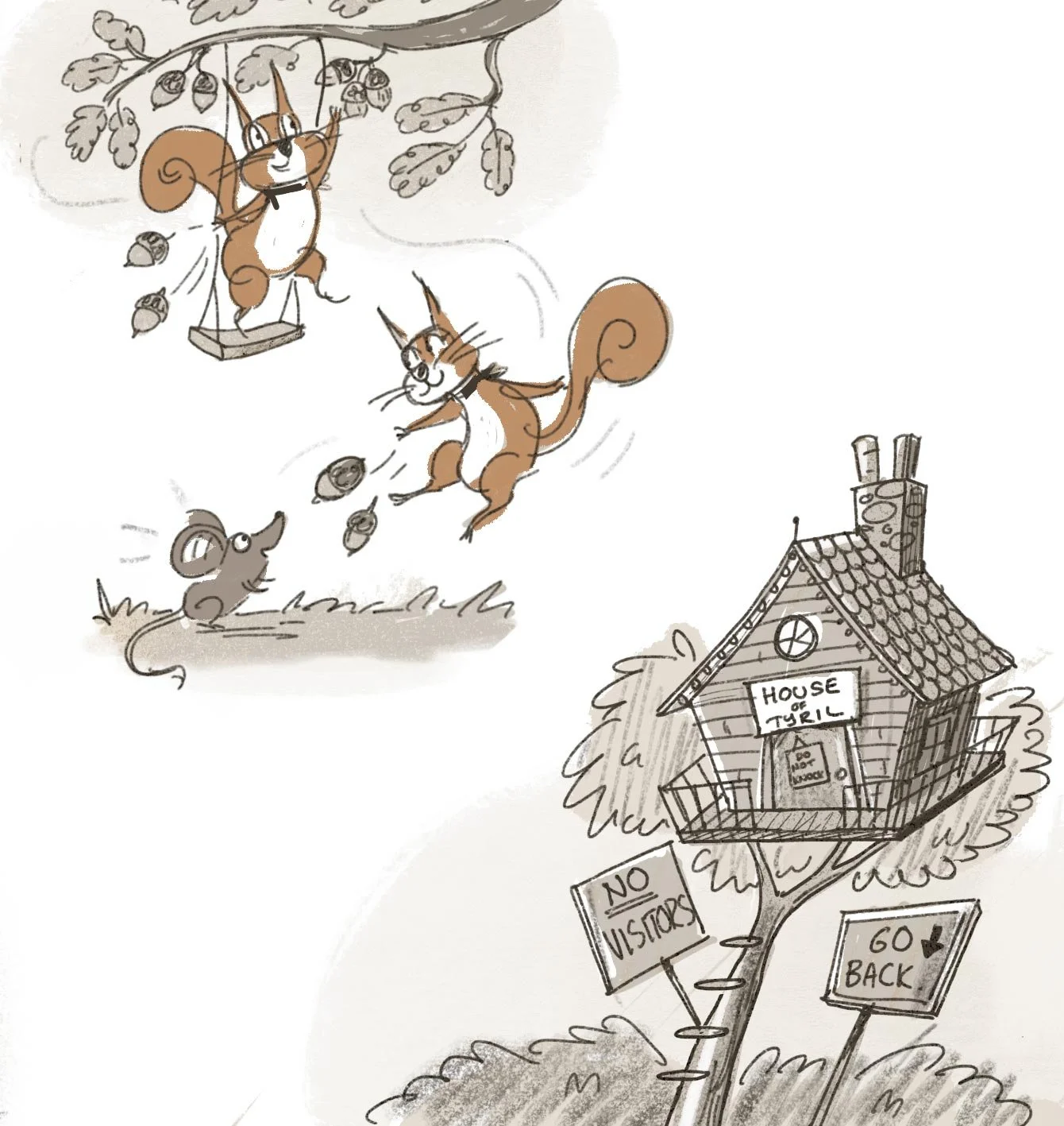 I spent many nutty months illustrating comedian Tommy Little’s cheeky tale of two squirrels: fun loving Grip and greedy old Tyril.
