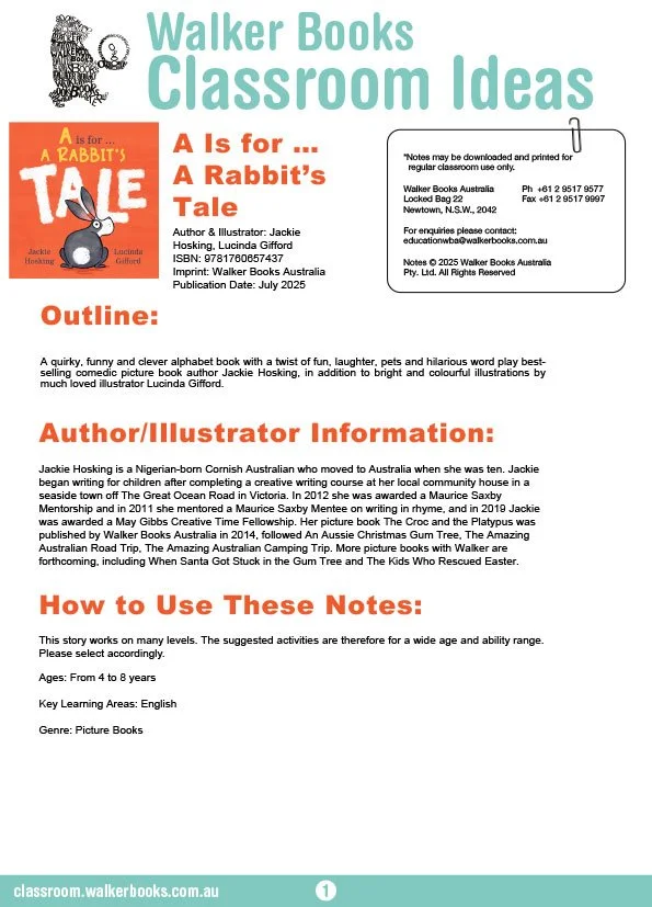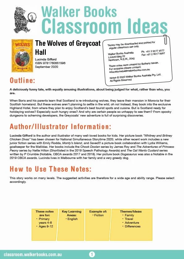 Here you will find some classroom resources for teachers as well as useful writing, illustration and creating tips. Book-Based Classroom Resources … The WOLVES OF GREYCOAT HALLBOOK 3: TAYLES OF THE FORESTWALKER BOOKS 2024(Resources created by Scholastic) A IS FOR A RABBIT’S TALEWALKER BOOKS 2025(Resources created by WALKER BOOKS/LAMONT BOOKS) This Book is a Time MachineAffirm Press 2023 (Resources created by THE AUTHORS) GRANDMA MURPHY’S PUSSYCATAffirm Press 2024(Resources created by Scholastic) FAIRY TALES FOR FEISTY GIRLSALLEN AND UNWIN 2019 THE CAT WANTS CUSTARD (2016)SCHOLASTIC AUSTRALIA The WOLVES OF GREYCOAT HALLBOOK 2: BORIS IN SWITZERLANDWALKER BOOKS 2022(Resources created by Scholastic) TOO MANY CATSAffirm Press 2022 The WOLVES OF GREYCOAT HALLBook 1WALKER BOOKS 2020 MONTY’S ISLAND, BOOK 1SCARY MARY AND THE STRIPE SPELLALLEN AND UNWIN 2019 TOO MANY DOGSAffirm Press 2024